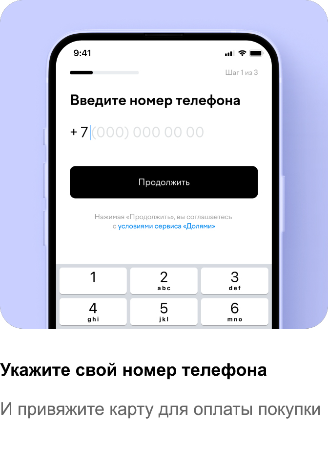 Для покупки Долями не нужны документы — только номер телефона и данные карты для оплаты.