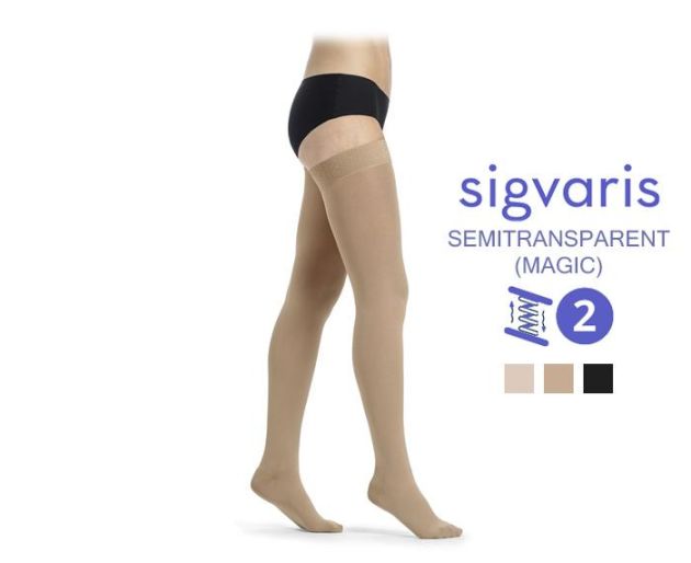 Компрессионные чулки до паха на резинке, Sigvaris Style Semitransparent (Magic), серия MG2, класс компрессии 2, закрытый мысок