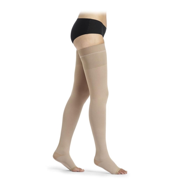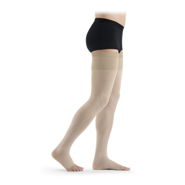 Компрессионные чулки до паха на резинке, Sigvaris Traditional (каучук), серия 505, класс компрессии 4, открытый мысок