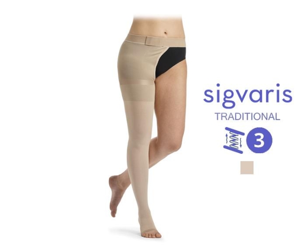 Чулок с застежкой на талии Sigvaris Traditional (каучук), серия 504, класс компрессии 3, открытый мысок