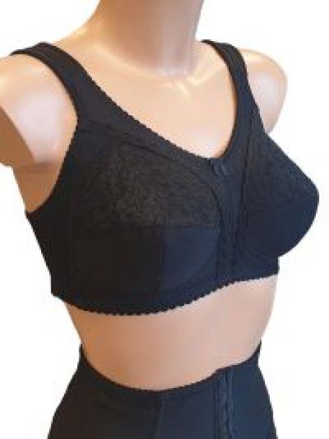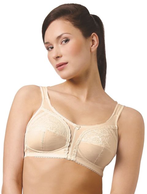 Предназначен для использования при реабилитации после операций на молочных железах, в том числе, после мастэктомии. Т-образная конструкция чашечек. В обеих чашечках бюстгальтера имеются удобные хлопчатобумажные кармашки, предназначенные для фиксации протезов молочных желез. Высокая и изысканная линия декольте бюстгальтера позволяет скрывать следы хирургического вмешательства. Отделка из кружевного полотна и узких кружев, подчеркивающих фигурные линии кроя. Бретели усилены поролоновыми деталями в области плеча и регулируются по высоте, в соответствии с индивидуальной потребностью женщины. Объем бюстгальтера можно регулировать многоступенчатой застежкой на спине. Тщательно обработанные швы обеспечивают свободу движений, широкая и эластичная задняя часть бюстгальтера и удобные бретельки обеспечивают комфорт при использовании.