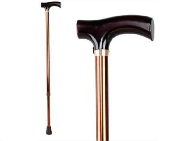 Трость с выдвижным устройством против скольжения с Т-образной деревянной ручкой.