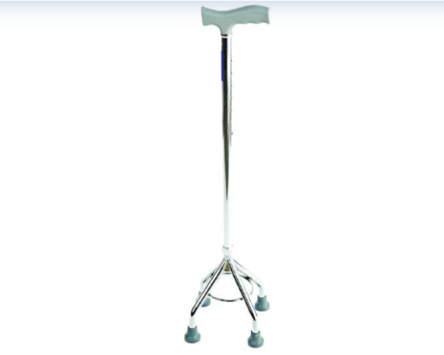 Трость имеет трапециевидное квадратное основание на четырех ножках. На каждой из трех опор — противоскользящая резиновая насадка. Т-образная рукоятка имеет анатомическую форму для удобного захвата, максимальная нагрузка: 110 кг.