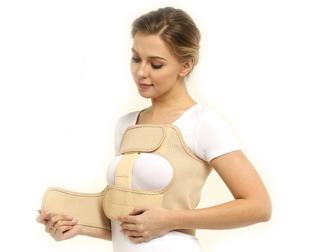 Съемный плотный аппликатор в хлопковом чехле спереди ложится на послеоперационный шов и фиксируется двумя клапанами