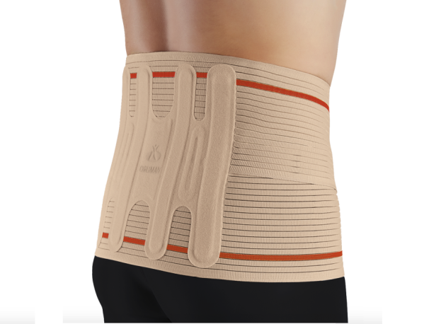 Задняя часть корсета усилена широкой матрицей с четырьмя анатомически сформованными ребрами жесткости, которые повторяют изгиб позвоночника, обеспечивая его поддержку и разгрузку. За счет чего корсет расслабляет спазмированные мышцы, уменьшая отечно-болевой синдром и увеличивая объем движений.