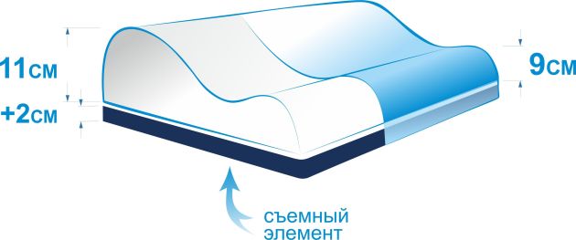 Анатомическая форма: Анатомическая форма с двумя валиками разной высоты. Подходит для сна как на спине, так и на боку.